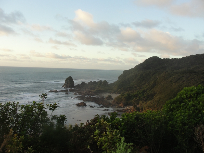 Iz Blenheima smo štartali v nedeljo zjutraj skozi dolino Wairau, kjer smo se enkrat že peljali, ko smo skupaj z Lukom in Ano šli na potep po narodnem parku Nelsonovih jezer. Naša prva interesna točka je bila zahodna obala, kar je pomenilo, da se nismo nameravali ustavljati, dokler zopet nismo zagledali morja, vendar tokrat na zahodni strani južnega otoka. Vožnja je bila intenzivna, vendar smo kljub temu na “indijsko” stran kopnega prišli šele v poznih popoldanskih urah, ko je ravno zahajalo sonce. In kakšen neverjeten trenutek smo ujeli. Ko smo prispeli do našega prvega postanka smo ob pogledu nad prečudovito naravno stvaritvijo vsi osupli in onemeli. Pokrajina porasla z zelenjem, tudi z najbolj vertikalno postavljenih skal, je v prostrani daljavi mogočnega modrega oceana ravnokar začela objemati sonce za njegov spokojni in neizprosen večerni počitek. Trenutek, ki je od nas neusmiljeno zahteval kratkotrajen postanek ob robu cestišča za ekstenzivnejše raztegovanje zakrnelih okončin ob neponovljivem pogledu na edinstvena naravna bogastva. Pravkar se nam je na obrazu narisal širok nasmešek, saj nam je šesti čut dal slutiti, da je to le začetek izjemnih stvari, ki jih bomo doživeli na poti in da vrhunec šele prihaja.