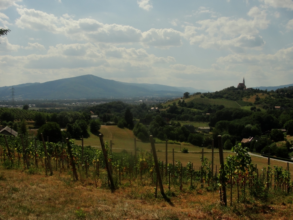 dneva sem ugotovil, da sem bil ves dan povsem v zmoti, vendar več o tem malce kasneje. Na lentu sem naredil kratek sprehod ob Dravi, naredil nekaj fotografij najstarejše trte na svetu in se nekoliko okrepčal. Vreme je bilo še vedno prečudovito. Ko sem si malce opomogel pa me je presenetil najvišji vzpon drugega dne in sicer vzpon čez Slovenske gorice do Lenarta na drugi strani hriba. K sreči sem se v Mariboru dobro spočil in sem bil šele na začetku drugega dela poti, hkrati pa se mi je odpiral tudi prekrasen pogled na dravsko polje s spodaj ležečim Mariborom in Pohorjem v ozadju, tako da vzpon niti ni bil pretirano zahteven.