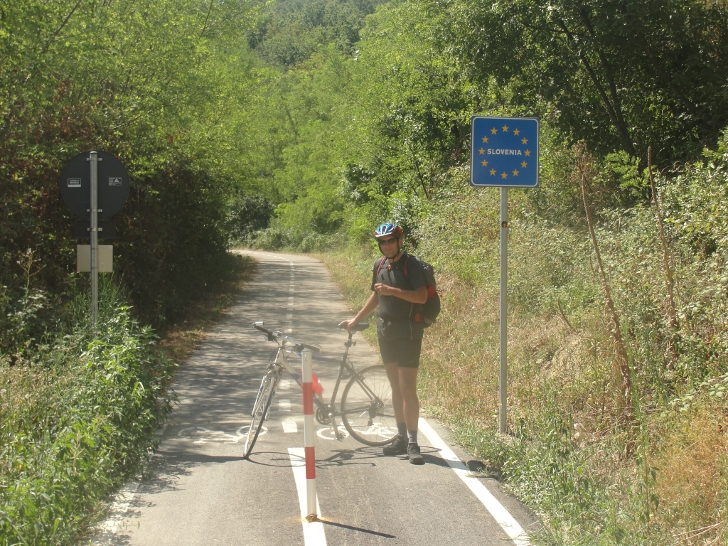 Napraviti sva morala še kar nekaj kilometrov preden sva zapustila Italijo, zato sva nekje vmes tudi nekoliko počila in se okrepčala. Zanimivost tega dne je bila, da sem začel kolesariti povsem v krču. Le s težavo sem sledil tempu, ki ga je narekoval Luka. Za seboj sem imel že kar precej kilometrov, on pa je prišel seveda svež in spočit. Na začetku je tako moral kar precej upočasnjevati in me tudi kje počakati, suveren sem bil le v vzponih, kjer sem občasno celo prevzel pobudo in hkrati upal, da se bom nekje sredi dneva tudi prebudil in začel kolesariti tako kot je treba. In res se je kmalu po Miramarju (ko se je promet drastično umiril, ko se ni bilo potrebno več izmikati številnim pešcem in skakati čez 3 metrske ograje) energija obrnila meni v prid. Na kolesu sem prevzel pobudo in sam začel narekovati kar nekoliko preoster tempo. Vendar, ko se je strah nekoliko polegel in je kolesarjenje postalo dejansko prijetno in sem se lahko končno sprostil, sem tudi začutil nek presežek energije, ki je mogoče na dan silil že prej pa med mešanico preostalih občutkov ni prišel do izraza. Kakorkoli, sva s povišano hitrostjo nadaljevala pot in se le nekaj par kilometrov pred Tržičem tudi odcepila za staro Gorico.