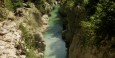 dolini Trente, sem se že znašel na novem sprehajalnem postanku. Na seznamu so se tokrat znašla velika korita Soče. Že v dolini Trente, le nekaj metrov preden v Sočo priteče njen tretji pritok Lepena se nahaja ena največjih znamenitosti najlepše slovenske reke. Velika korita Soče so svoje ime dobila po svoji nenadomestljivi obliki, saj dejansko izgledajo kot velikanska, globoka korita, postavljena eden za drugim skozi katera se pretaka kristalno čista reka. Ko sem pomislil na celotno pot, ki sem jo prekolesaril in stvari, ki sem jih videl, si res nisem predstavljal, da vse to obstaja v tako majhni državici kot je naša.